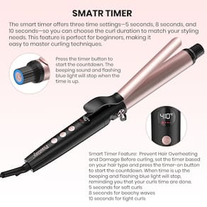 - Temporizador inteligente para controle sem esforço: perfeitamente projetado para iniciantes, o temporizador inteligente oferece 3 opções predefinidas — 5, 8 e 10 segundos — permitindo que você personalize sua rotina de estilo. Isso garante a aplicação precisa do calor, evitando o superaquecimento e garantindo cachos consistentemente sem falhas, assim como um estilista profissional conseguiria.
