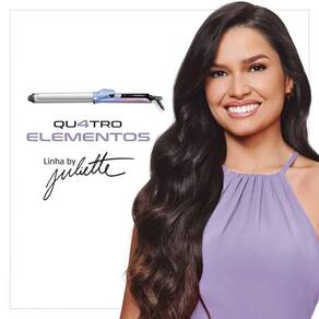 Modelador de Cachos By Juliette Mondial 70W MC-JU-03 Bivolt O Modelador de Cachos da Linha by Juliette Qu4tro Elementos traz um revestimento especial enriquecido com infusão de Cerâmica, Titânio, Tourmaline e Nano Silver. Esses 4 elementos, juntos, protegem seus fios e garantem uma aparência mais saudável aos cabelos, com brilho intenso, maciez e sem frizz Características:EAN: 7898578153401Marca: MondialModelo: MC-JU-03Cor: Azul e rosaVoltagem: BivoltPotência: 70WPainel digital com controle de temperatura: São 5 opções de 120C a 220CRevestimento Qu4tro elementos:Cerâmica: Garante uma melhor distribuição do calor e contribui para uma secagem rápida e mais saudávelTitânio: Tecnologia que age na umidade dos cabelos e reduz o tempo de secagem, além de eliminar o efeito frizzTourmaline: Fonte natural de íons negativos, que eliminam o frizz e garantem mais brilhoNano Silver: Partículas de prata que ajudam a inibir a ação de bactérias, contribuindo para a proteção dos fios e do couro cabeludoTubo com diametro 28mmTamanho do cabo de energia: 2,5mTubo mais longo: Indicado para todos os comprimentos de cabelos, inclusive os mais compridosRegulamentação Inmetro: OCP0040 Dimensões da Embalagem:Altura: 7cmLargura: 45cmProfundidade: 16cmPeso: 0,650KgGarantia: 12 Meses Ean: 7898578153401