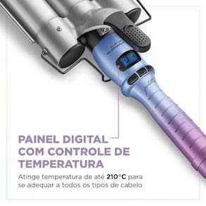Modelador de cachos mct-ju-03 bivolt O modelador de cachos triondas da linha by juliette qu4tro elementos traz um revestimento especial enriquecido com infusão de cerâmica, titânio, tourmaline e nano silver. Esses 4 elementos, juntos, protegem seus fios e garantem uma aparência mais saudável aos cabelos. Com o triondas você pode alcançar aquele cabelo de praia perfeito sem sair de casa. Basta apertar e soltar para obter ondas instantâneas, exuberantes e uniformes. Projetado para oferecer resultados impecáveis em poucos minutos, permite criar ondas marcantes, mas com um resultado despojado e moderno. Saiba mais sobre o mct-ju-03: Revestimento especial com qu4tro elementos: Cerâmica: garante uma melhor distribuição do calor e contribui para uma modelagem rápida e mais saudável. Titânio: tecnologia que age na umidade dos cabelos e reduz o tempo de modelagem, além de eliminar o efeito frizz. Tourmaline: fonte natural de íons negativos, que eliminam o frizz e garantem mais brilho. Nano silver: partículas de prata que ajudam a inibir a ação de bactérias, contribuindo para a proteção dos fios e do couro cabeludo. Tubos de 32mm o tubo triplo de 32mm cada proporciona uma modelagem com ondas marcantes e um visual cheio de estilo. Painel digital com controle de temperatura atinge temperatura de até 210c para se adequar a todos os tipos e estilos de cabelo. Efeito triondas o modelador de cachos triondas colors proporciona uma finalização impecável com ondas naturais, criando o famoso beach waves, aquele estilo praia ou sereia queridinho das famosas. O resultado fica moderno, despojado e, seja seu comprimento longo ou curto, a finalização fica perfeita Bivolt automático pode ser utilizado em ambas voltagens: 127v e 220v. Liberdade para usar seu modelador em qualquer lugar Cabo giratório de 2,5 metros o cabo-plugue tem 2,5 metros de comprimento e gira 360, garantindo mais autonomia de movimento. Um ano de mondial a mondial é a escolha de milhões de consumidores. Mondial, a escolha inteligente Modelo: mct-ju-03 Cor: azul/rosa Voltagem tensão : bivolt Itens inclusos: 01 modelador de cachos triondas e 01 manual de instruções Dimensão do produto: 9,00cm x 39,50cm x 12,50cm axlxp Controle de temperatura: sim Cabo giratório: sim Tecnologias emite íons : sim Revestimento: cerâmica,titanio, turmaline e nano silver Peso: 0,67kg : 1 ano