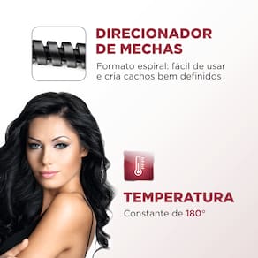FÁCIL DE USAR: DIRECIONADOR DE MECHAS: O formato espiral é superfácil de manusear e cria cachos bem definidos, com total praticidade e rapidez.