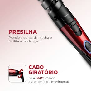 CABO GIRATÓRIO 360°: Mais fácil de manusear: o fio da escova modeladora é giratório e não enrola durante o uso.