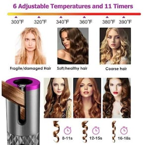 Modelador de Cachos Sem Fio: Beleza Sem Fio 1. 100% Brand new e super alta qualidade. 2. Enrolamento automático de uma chave, 0 operação básica, fácil para novatos. 3. Operação simples, ajuste de temperatura de uma tecla com display LED LCD. 4. Apropriado para todos os tipos dos cabelos e não fere seus cabelos.