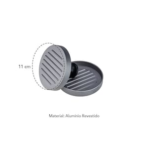Contêm: 1 Modelador de Hamburguer Altura total: 8 cm Altura da forma: 2 cm Diâmetro: 11 cm Material: Alumínio Revestido e Nylon Casacha é uma loja online de artigos para casa, cozinha, banheiro e lavanderia