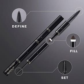 - DEFINIÇÃO: Use a ponta de microprecisão do lápis para definir e melhorar a forma de suas sobrancelhas naturais. Aplique uma leve pressão para desenhar traços semelhantes a cabelos e construir o visual de natural a ousado.