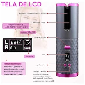 Prático e moderno, nosso modelador é perfeito para as mulheres que não tem tempo a perder. Com a tela led grande e o display lcd, você pode visualizar a temperatura, direção e indicador de bateria em um piscar de olhos. E falando em temperatura, nosso modelador oferece 6 níveis, variando de 150º até 200º, para que você possa escolher o melhor para o seu tipo de cabelo. E o melhor de tudo Com nosso modelador de cachos, você pode ter cabelos lindos em qualquer lugar e economizar tempo no processo. Imagine a liberdade de criar lindos cachos enquanto viaja ou se prepara para um evento importante.