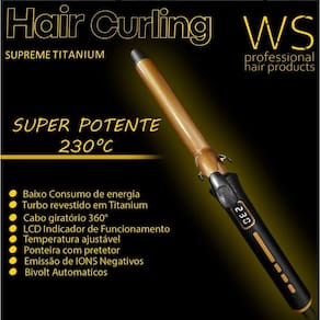 Modelador de Cachos Profissional Air Curling Supreme Titanium Bivolt Cachos Perfeitos com Tecnologia Avançada Transforme seus cabelos em verdadeiras obras de arte com o Modelador de Cachos Profissional WS Curling Iron Titanium Bivolt! Disponível no diâmetro 32 mm, ele oferece versatilidade para criar cachos definidos, ondas suaves ou volumosas espirais, garantindo um visual deslumbrante e cheio de movimento. Tecnologia de Ponta para Resultados Impecáveis Desenvolvido para profissionais e amantes de beleza, nosso modelador combina revestimento em Titanium, emissão de íons negativos e controle de temperatura preciso, garantindo cachos duradouros, sem frizz e com brilho intenso. Principais Benefícios: Tecnologia Full Titanium – O tubo revestido em titânio proporciona aquecimento uniforme, reduzindo danos e garantindo cachos perfeitos. Emissão de Íons Negativos – Sela as cutículas, neutraliza a estática e mantém a hidratação natural dos fios. Temperatura Ajustável (150°C a 230°C) – Personalize o calor conforme seu tipo de cabelo, desde fios finos até os mais resistentes. Ponteira com Protetor e Apoio de Mesa – Segurança total durante o uso e praticidade na hora de guardar. Cabo Giratório 360° – Mais liberdade de movimento, evitando enrolamentos e facilitando a modelagem. LED Indicador – Sinalização visual para controle preciso do aquecimento. Baixo Consumo de Energia – Eficiência energética sem perder desempenho. Inclui Bolsa Térmica + Luva Protetora – Armazenamento seguro e manuseio confortável. Resultados Profissionais em Casa Com aquecimento rápido e design ergonômico, o WS Curling Iron Titanium é perfeito para quem busca cachos impecáveis, duradouros e com toque profissional. Adquira já o seu e transforme seus cabelos com cachos perfeitos!