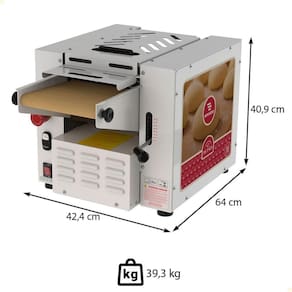 DESCRIÇÃO - A Modeladora de Pães Braesi MBMJ-22/1 G3 é a escolha ideal para padarias que valorizam padronização, agilidade e segurança na produção. - Compacta e funcional, oferece praticidade no dia a dia, otimizando o modelamento de pães com rapidez e precisão. - Possui laterais em aço com pintura epóxi, que garantem durabilidade, grade de segurança que desliga automaticamente ao ser levantada e alavanca regulável para ajustar o tamanho conforme a necessidade. - Com capacidade para até 1 kg, é a aliada perfeita para elevar a qualidade da sua produção.