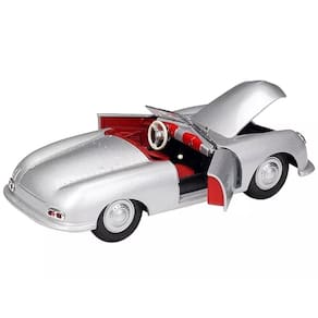 Novo modelo de carro fundido sob pressão em escala 1/24 de 356/1 Roadster Silver com interior vermelho “NEX Models” modelo de carro fundido sob pressão da Welly24090Silver - Caixa totalmente nova. Pneus de borracha reais. Tem rodas direcionáveis. Abrindo o capô e as portas. Interior detalhado, exterior. Feito de fundição sob pressão com algumas peças de plástico. Dimensões de aproximadamente L-6,25, W-3,5, H-2,25 polegadas.