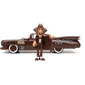 Jada 1959 Cadillac Coupe DeVille marrom e branco com gráficos e Count Chocula Diecast estatueta Hollywood Rides Series 1/24 modelo de carro fundido - Ótimo produto