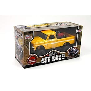 Novo modelo fundido sob pressão em escala 1:24 de 1966 Chevrolet C10 Fleetside Pickup Truck Off Road Yellow fundido sob pressão pelo novo interior, abertura do capô e fundido sob pressão com um pouco de plástico aproximadamente L-8, W-4, H-4. Observe que o fabricante pode trocar a caixa de embalagem a qualquer momento. O produto permanecerá exatamente no: polegada X Comprimento: polegada X Comprimento: polegada X