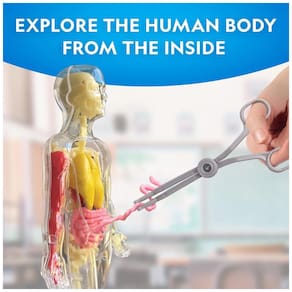 EXPLORE O CORPO HUMANO POR DENTRO! Crianças a partir de 8 anos podem estudar a anatomia humana removendo e examinando 9 órgãos macios, 18 ossos que brilham no escuro e músculos do braço. Cada peça pode ser removida individualmente da concha de 9 polegadas de altura usando a pinça incluída. OSSOS QUE BRILHAM NO ESCURO! Os 18 ossos do corpo brilham no escuro, proporcionando uma aparência super legal a este modelo de corpo humano. Crianças podem identificar ossos como a coluna vertebral, sacro, ossos do quadril, escápula e clavícula, além de ossos das mãos, braços, pernas e pés. KIT DO CORPO HUMANO DE 32 PEÇAS! Além dos órgãos, ossos e músculos, esta incrível atividade de aprendizado inclui uma concha corporal de 9 polegadas, suporte de exibição, pinça, gráfico de organização/identificação e um Guia de Aprendizado detalhado repleto de fatos sobre o corpo. APRENDA SOBRE BIOLOGIA HUMANA! Este kit de ciências do corpo humano é construído para durar, com componentes de qualidade, sendo a atividade perfeita para a escola ou para casa. É uma forma divertida e prática para as crianças aprenderem como ossos, órgãos e músculos trabalham juntos no corpo. BRINQUEDOS EDUCATIVOS DE ALTA QUALIDADE! Temos orgulho em fabricar brinquedos científicos práticos de alta qualidade, e todos os nossos produtos são respaldados por um serviço excepcional.