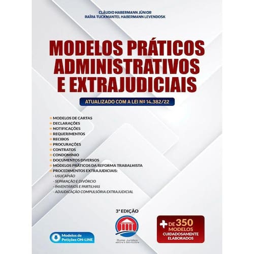 Após o grande sucesso da segunda edição da obra Modelos Práticos, foi com imensa satisfação e compromisso, juntamente com a Dra. Raíra Tuckmantel Habermann Levendosk, a atualização dessa terceira edição. Assim como nas edições anteriores, o público alvo dessa obra não se restringe apenas aos advogados e operadores do Direito, mas a quaisquer pessoas que lidam com a burocracia do dia a dia, e enfrentam dificuldades ao elaborar documentos como: cobranças, avisos, notificações, atas, contratos de trabalho, inventário, testamento, etc. Um dos diferenciais da obra é a abordagem dos procedimentos extrajudiciais, no qual nessa edição, abordamos de forma prática e objetiva, a usucapião, separação e divórcio, inventários e partilhas, e a Adjudicação Compulsória Extrajudicial, tema extremamente importante para regularização da propriedade, o qual dispõe sobre o Sistema Eletrônico dos Registros Públicos (SERP), modernizando assim os procedimentos relativos aos registros públicos de atos e negócios jurídicos, e de incorporações imobiliárias, introduzido no ordenamento jurídico pela Lei 14.382 de junho de 2022. Igualmente e não menos importante, abordamos de maneira simplificada vários temas relacionados a matéria Trabalhista, facilitando assim a sua aplicação tanto para os operadores de Direito, como para empreendedores, recrutadores, etc. Dessa forma, diante o desafio proposto pela editora para conosco, tenho a convicção de que a terceira edição da obra foi elaborada de maneira muito mais abrangente e didática, dirimindo assim dúvidas tanto de profissionais como de leigos.