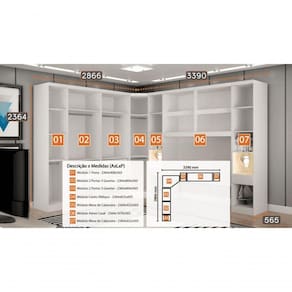 FIQUE ATENTO: Verifique se as medidas disponíveis do seu espaço são compatíveis com as medidas do modulado.