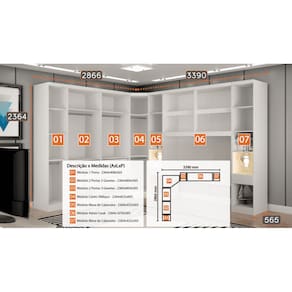 Modulado Casal Completo 6 Portas 6 Gavetas - Rizon - Móveis Novo HorizonteO Modulado Casal Rizon irá mudar o visual do seu quarto, pois ele possui um bom número de compartimentos, além de nichos e várias prateleiras que podem acomodar bolsas, roupas de camas, sapatos e o que mais você precisar para um dia a dia mais prático. Ainda conta com 6 gavetas espaçosas com corrediças telescópicas e 5 cabideiros. Perfeito, não é mesmo? Aproveite!Faz parte do anúncio:1 Módulo 1 Porta2 Módulos 2 Portas 3 Gavetas1 Módulo Canto Oblíquio2 Módulos Mesa de Cabeceira1 Módulo Aéreo CasalObs: Objetos de decoração, cama e colchão não acompanham o produto.Particularidades do Modulado:Características:- 100% MDF- Excelente espaço interno- 15 prateleiras internas- 8 gavetas com corrediças telescópicas- 5 cabideiros de alumínio- Dobradiças de pressão 35mm - Indicado para colchões até 1,38m ou 1,58mDimensão Total:Altura: 2,36 metrosLargura: 2,86x3,36 metrosDimensões Módulo 1 Porta:Altura 2,36 metrosLargura 40,8 centímetrosProfundidade: 56,5 centímetrosDimensões Módulo Canto Oblíquio:Altura 2,36 metrosLargura 82,7 metrosProfundidade: 69,5 centímetrosDimensões Módulo 2 Portas:Altura 2,36 metrosLargura 80,4 centímetrosProfundidade: 56,5 centímetrosDimensões Módulo Mesa de Cabeceira:Altura 2,36 metrosLargura 42,6 centímetrosProfundidade: 56,5 centímetrosDimensões Módulo Aéreo Casal:Altura 2,36 metrosLargura 1,67 metrosProfundidade: 56,5 centímetrosFIQUE ATENTO: Verifique se as medidas disponíveis do seu espaço são compatíveis com as medidas do modulado.Informações Importantes:.- Produtos podem apresentar diferenças de tonalidades entre a foto na tela e o produto real, devido a calibração de cor de tela.- Limpar com flanela ou pano macio. Não utilizar álcool. Não utilizar produtos abrasivos ou corrosivos.- Nós prezamos pela qualidade da entrega em primeiro lugar, trabalhamos com transportadoras altamente selecionadas e os melhores materiais de embalagem.- A montagem é de total responsabilidade do comprador. Antes de comprar, verifique o espaço disponível para a montagem.- Certifique-se de que o produto caiba em elevadores e vãos de escadas, não fazemos içamentos. Quaisquer despesas deste tipo ficam a cargo do cliente- Garantia de 3 meses contra defeitos de fabricação.