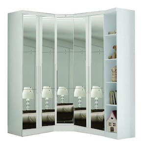 Modulado Closet Completo Espelhado 5 Portas 6 Gavetas - Rizon-Branco - Móveis Novo Horizonte