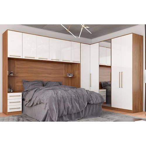 Quarto Casal Modulado Irlanda 7 Peças (3 Armários + 1 Ponte Aérea + 3 Complementos) QCM166 Amendola/Branco - Demóbile