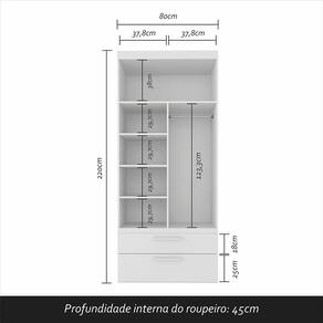 Medidas do Produto Montado: A:220cmxL:160cmxP:47cm Medida do Módulo 2pts 2gav: A:220cmxL:80cmxP:47cm Medida do Módulo 2pts: A:220cmxL:80cmxP:47cm Medida do Puff Baú: A:46cmxL:77cmxP:47cm Medida da Cômoda: A:100cmxL:62,4cmxP:45cm