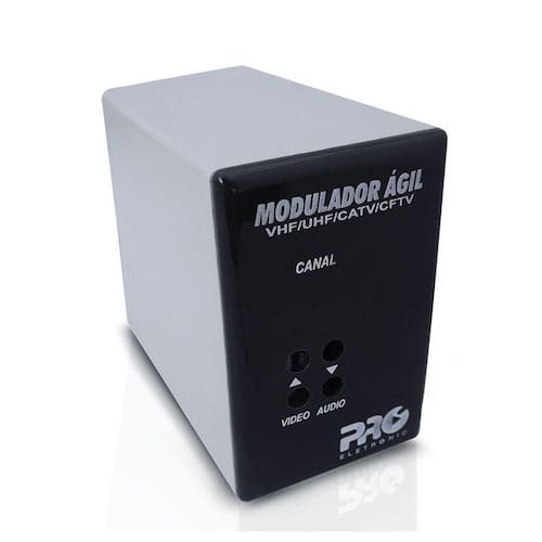 Descricao Canais de Saida VHF: FI, 2~13Canais de Saida UHF: 14~70Canais de Saida CATV: 14~99Nivel de Saida: 20 + 2 dBmVLargura de Faixa: 10 MHzImpedancia: 75 OhmsTensao de entrada: 110/220 VACBaixo custoPossibilidade de selecionar qualquer canal de VHF, UHF, ou CATVBivoltDisplay indicador de canalControles de equalizacao de audio e video na parte frontal do equipamentoAplicacao:Este modulador e aplicado onde ha a necessidade de transformar o sinal de audio/video em RF, como, por exemplo, sinais provenientes de cameras, DVD, decodificadores, receptores, video games, etcEspecificacao Tecnica Dimensoes: 85 x 62 x 98Peso: 370 gA Proeletronic desenvolveu um modulador totalmente agil. Com um sistema muito simples de selecao de canais, e possivel selecionar qualquer canal da faixa de VHF/UHF/CATV. O sistema agil permite grande comodidade, pois nao precisa manter grandes estoques de moduladores em canais especificos.