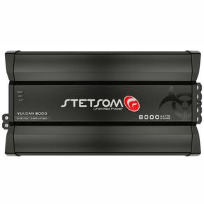 • CARACTERÍSTICAS VULCAN 8000 – 2 OHMS • Número de Canais 1 • Potência RMS 8000W • Potência RMS em 2 Ohm 12,6V: 8000W • Potência RMS em 4 Ohms 12,6V: 4200W • Potência RMS em 2 Ohm 14,4V: 8700W • Potência RMS em 4 Ohms 14,4V: 4400W • Tensão de Alimentação: 9V ~ 16V • Resposta em Frequência: 10Hz ~ 12KHz • Crossover Low Pass: 90Hz ~ 12KHz • Crossover High Pass: 10Hz ~ 90Hz • Relação Sinal Ruído: >90dB • Sensibilidade de Entrada: 200mV • Impedância de Entrada: 20K Ohms • Impedância Mínima de Saída: 2 OHMS • Consumo com Sinal Musical: 370A • Consumo com Sinal Bass: 720A • Dimensões (A x L x C) mm: 78 x 231,5 x 423 • Peso: 5,8 Kg