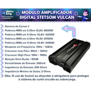 • 01 Módulo Amplificador Digital Stetsom Vulcan • Manual e Certificado de Garantia.