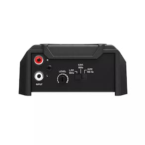Número de Canais 1 Potência RMS em 2 Ohms 12,6V 1 x 220W RMS Potência RMS em 4 Ohms 12,6V 1 x 120W RMS Potência RMS em 2 Ohms 13,8V 1 x 280W RMS Potência RMS em 4 Ohms 13,8V 1 x 150W RMS Tensão de Alimentação 9,5 ~ 15Vdc Resposta em Frequência 10Hz ~35KHz Crossover Low Pass L.P.F: 90Hz Crossover High Pass H.P.F: 50Hz / H.P.F: 700Hz Relação Sinal Ruído > 90 dB Distorção Harmônica > 0,03 % THD Sensibilidade de Entrada 230mV Impedância de Entrada 44K OHMS Impedância Mínima de Saída 2 OHMS Consumo com Sinal Musical 11,5A Consumo com Sinal Bass 23A Dimensões (A x L x C) mm 48 x 78 x 112 mm Peso Kg 0,355 Kg