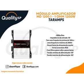 A Taramps apresenta o módulo amplificador MD 1200.1 1ohm. Foi cuidadosamente desenvolvido com a mais alta tecnologia, oferecendo alto rendimento e desempenho para os mais variados sistemas de som automotivo, atendendo toda a gam4 de frequência, em outras palavras, é um módulo FULL RANGE. É um amplificador classificado como mono, tem um canal com potência máxima de 1200 Watts RMS.