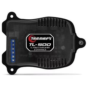 A Taramps apresenta o módulo amplificador TL 500 . É estéreo, com potência máxima de 90 Watts RMS com impedância de 2 ohms e com 2 canais de 45 Watts RMS. O TL 500 possui tecnologia inovadora para sistemas de som automotivo com acionamento automático por nível de áudio (sistema A.R.T.) para melhorar seu sistema de som e tocar para alto falantes de porta.