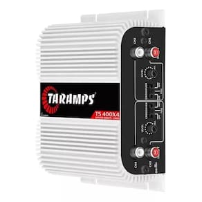 Se você procura um amplificador forte, consagrado no mercado, versatilidade, confiança e ainda menor e mais tecnológico, o Módulo Amplificador Taramps TS 400x4 é o que você procura. Possui potência máxima de 400W RMS e 4 canais. Cada canal possui potência de 100W RMS à 2 OHMs e pode ser ligado em bridged (2X 200RMS 4OHMs). O módulo trabalha com resposta de frequência de 20Hz à 30KHz (-1dB) com baixa distorção harmônica, e possui dois crossovers embutidos e duas regulagens de ganho (1 para para cada par de canal), proporcionando alto rendimento e muita qualidade sonora.