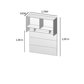 A linha modulada Altezza é ideal para você organizar seu quarto otimizando ao máximo os espaços disponíveis. O Módulo Aéreo Queen com Cabeceira é uma solução completa, pois foi projetado para preencher o espaço entre a cama e as divisórias do seu cômodo. Pode ser utilizado de forma avulsa, ou como complementar de toda a linha modulada Altezza.