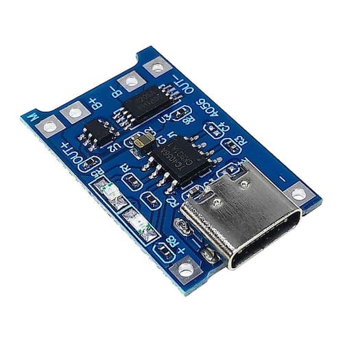 O Módulo Carregador de Bateria Lítio TP4056 5V 1A USB-C é uma placa para gerenciamento de carga de baterias de lítio. Este módulo está equipado com o chip TP4056 que é um carregador linear de corrente constante / tensão constante completo para baterias de íon-lítio de célula única.