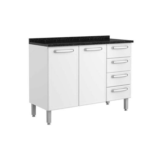 Balcão de Cozinha Evidence 7126 2 Portas e 4 Gavetas c/ Tampo 120cm Branco - Bertolini
