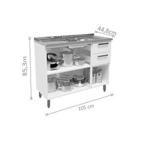 Balcão de Cozinha Gabinete c/Pia Múltipla 6015 3 Portas e 2 Gavetas 105cm Branco - Bertolini