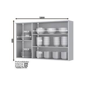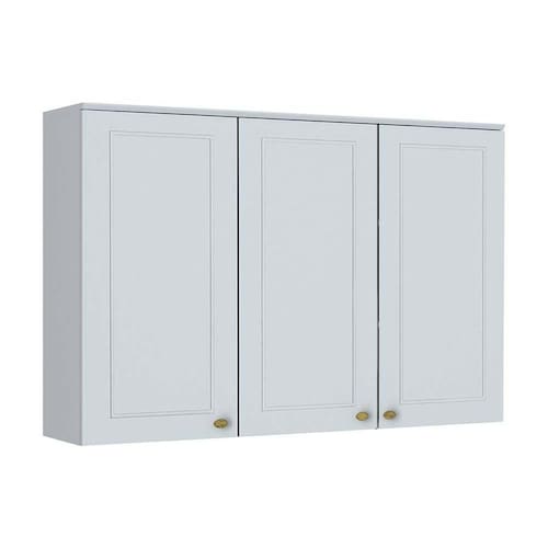 Material de Estrutura - 100% MDF Tipo de Móvel - Armário Aéreo - Armário Triplo Tipo de Pintura - Pintura em UV (Ultravioleta) Tipo de Acabamento da Pintura - Fosca Tipo de Acabamento - Interior em Trama