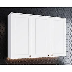 CARACTERÍSTICAS DE MÓVEIS Tipo de Estrutura do Móvel - 100% MDF Tipo de Pintura - UV Tipo de Acabamento da Pintura - Fosca Características de móveis - Armário Aéreo - Armário Triplo Tipo de puxador - Metal Zamac Quantidade de Prateleiras - 2 Prateleiras Quantidade de Portas - 3 Portas de Abrir Garantia - 3 meses