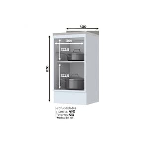 Balcão de Cozinha Americana 1 Porta s/ Tampo 40cm Branco - Henn