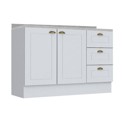 Produto: Balcão de Cozinha Americana 2 Portas e 3 Gavetas p/ Pia 120cm S/tampo Branco - Henn