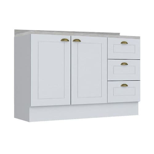 Balcão de Cozinha Americana 2 Portas e 3 Gavetas p/ Pia 120cm S/tampo Branco - Henn