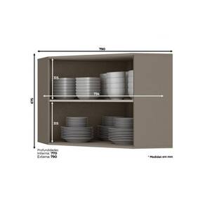 CARACTERÍSTICAS DE MÓVEIS Tipo de Estrutura do Móvel - 100% MDF Tipo de Pintura - UV Tipo de Acabamento da Pintura - Alto Brilho/Fosca Características de móveis - Armário Duplo - Aéreo de Canto Oblíquo - Canto Oblíquo Tipo de puxador - Metálico Quantidade de Prateleiras - 1 Prateleira Quantidade de Portas - 2 Portas de Abrir Garantia - 3 meses
