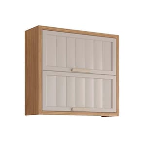 Armário Aéreo p/ Cozinha Estela c/2 Portas Basculantes Ripada 80 cm Freijo/Off White - MGM Marca: MGM