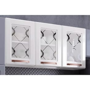 Armário Aéreo p/ Cozinha Mirage New 3 Portas c/ Vidro 120cm Branco - Telasul