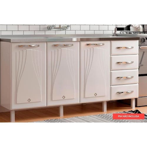 Balcão de Cozinha Star New 3 Portas e 4 Gavetas s/ Tampo 120cm Branco - Telasul