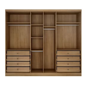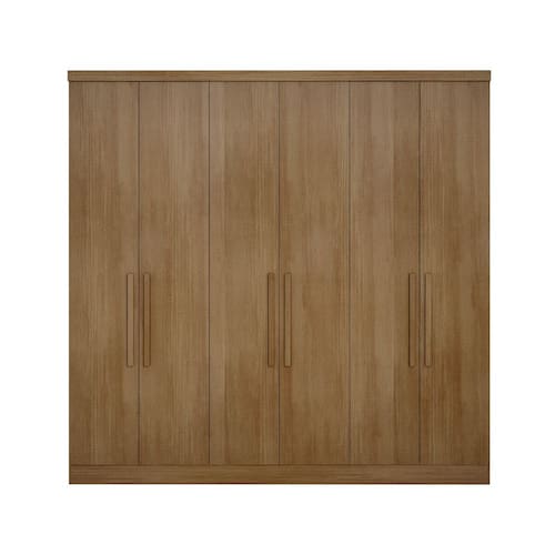 Produto 100 MDF, 6 portas com puxadores com acabamento amadeirado, dobradi?as de press?o 35mm, 3 gavetas internas com puxadores e corredi?as telesc?picas, cabideiro em alum?nio, pe?a ideal para voc? criar a modula??o perfeita para seu ambiente.