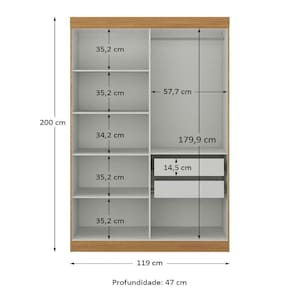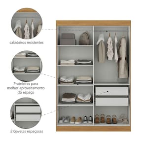 Não realizamos montagem, desmontagem, por escadas ou içamento. É responsabilidade do cliente verificar se as dimensões do produto são compatíveis com portas, elevadores e corredores. Evite imprevistos: confira todos os detalhes antes de concluir sua compra. MEDIDAS:: A = 200 cm L = 119 cm P = 47 cm | PESO:: 75,90kg | PESO SUPORTADO:: 112kg | PRATELEIRAS SUPORTAM ATÉ:: 6kg | CABIDEIRO SUPORTA ATÉ:: 12kg | GAVETA SUPORTA ATÉ:: 3kg | MODELO:: Modulo Madrid Guarda Roupas 4 Portas e 2 Gavetas 2m | MARCA:: Maxel | MATERIAL DA ESTRUTURA:: MDP | ESPESSURA DO MATERIAL DA ESTRUTURA:: 12mm | TIPO DE PINTURA:: Verniz alto brilho | ACABAMENTO:: Texturizado | PORTAS:: 2 | TIPO DE PORTA:: Bater | GAVETAS:: 2 | CABIDEIROS:: 1 | CORREDIÇA:: Metálica | DOBRADIÇAS:: Metálicas | MATERIAL DO CABIDEIRO:: Madeira | PUXADOR:: Plástico | PRATELEIRAS:: 4 | PÉS:: Não possui | DIFERENCIAL:: Amplo espaço de armazenamento, acabamento em verniz texturizado e verniz brilho nas portas, produto versátil. | ITENS INCLUSOS:: 1 Modulo Guarda Roupas, 1 Manual de Montagem, 1 Kit Parafusos | INSTRUÇÕES E CUIDADOS:: Para maior durabilidade, recomendável que a limpeza dos móveis seja feita com pano limpo e levemente umedecido em água e sabão neutro. Em seguida, deverá ser passado um pano limpo e seco | GARANTIA:: 3 meses | AVISO:: Importante sobre a : A é realizada até a portaria ou porta de entrada do indicado, desde que o acesso seja permitido. Para locais com portaria, a será feita no piso térreo. | Altura: 200 | Inclui manual de montagem: sim | Largura: 119 | Materiais da estrutura: MDP | Profundidade: 47 | Requer montagem: sim | Cor: Madeirado/Off White