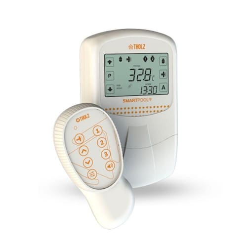 No Aquecimento Solar atua na circulação da água através do diferencial de temperatura entre a piscina e os coletores solares, é compatível com trocador de calor e sistemas hidráulicos com uma ou duas bombas. Ele dispõe ainda de duas saídas a relé extras. O controlador possui um display LCD customizado com teclas touch sensíveis ao toque onde são exibidos a temperatura da água, hora, os modos de comando e o estado das saídas. O SmartPoll possui controle remoto com RF externo e um módulo de comando. O módulo deve ser alimentado por uma fonte de 12V com potência vendido separadamente compatível com a quantidade de refletores, a potência não pode ser superior a 90w.