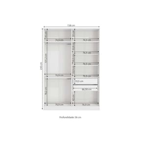 Dimensões(Cm): Comprimento(Profundidade): 56cm x Largura: 158cm x Altura: 230cm