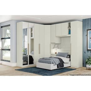 Modulado de Quarto Guarda Roupa MC04 Seletto c/ 2 Portas c/ Espelho e 3 Gavetas Areia/Jequitibá - Henn Marca: Henn
