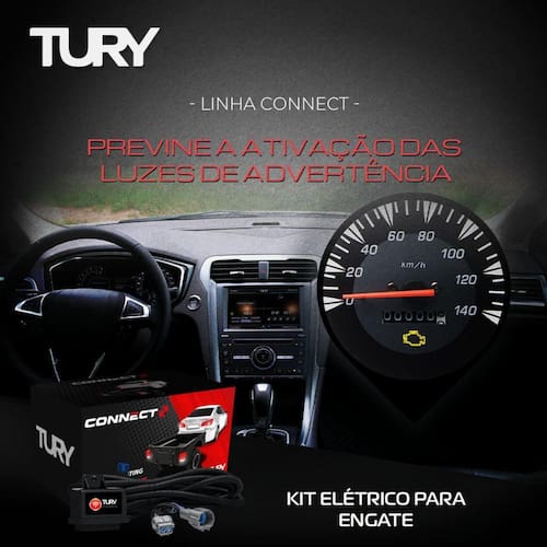 Módulo eletrônico da Tury para a instalação elétrica de engates em veículos. Possui conectores originais para facilitar a instalação e preservar a originalidade do veículo.