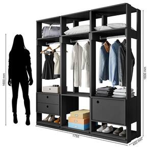 Cor: Preto Velluto | Gênero: Unisex | Largura: 175cm | Manual: Sim | Model: Titan | Origem: | Peso: 65kg | ProductContents: 1 guarda roupa closet | ProductHeight: 183 | ProductInstructions: Produto para uso em ambiente interno, nao devendo ficar exposto ao sol, calor e umidade excessivos. | ProductLength: 45 | ProductWarranty: 90 dias após o do produto | ProductWeight: 65 | ProductWidth: 175 | Profundidade: 45cm | Requere montagem: Sim | SizeDescription: 183 x 175 x 45 cm | SupplierSimpleName: Módulo Guarda Roupa Closet Casal 1 Porta 2 Gavetas Titan Preto Velluto - Móveis Leão | Tipo de Garantia: Fabricante