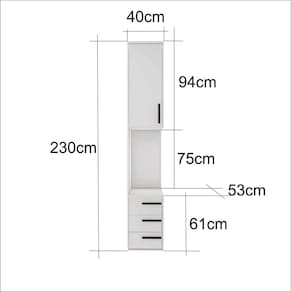 Pintura em 7 camadas de tinta, proporcionando melhor resistência e durabilidade. Puxadores em alumínio, tendo melhor acabamento e evitando ferrugem. Corrediças telescópicas resultando deslizamento suave. Ideal para quartos pequenos e modular juntamente com demais módulos da linha. Acabamento da Gaveta: Pintura Texturizada UV Acabamento da Porta: Pintura Texturizada UV Acabamento da Prateleira: Pintura Texturizada UV Ambiente Principal: Quarto Complexidade da Montagem: Média: pode ser montado por mais de uma pessoa e/ou necessite de maior conhecimento para montagem Composição: MDF 15mm e 25mm Cor: Branco Cor do Produto: Branco Cor Interna: Branco Escala de Brilho: Semi-Brilho Espessura do Material da Estrutura: 15 Gaveta com Chave: Não Itens Inclusos: 1 Módulo, kit de ferragens e manual de montagem Linha ou Coleção: Modulada Manual de Montagem e Instalação: https://cdn2.madeiramadeira.com.br/atributo/sandrin/993543-220180-manual-modulo-criado-esq-400x530-novo.pdf Material da Gaveta: MDF Material da Porta: MDF Material da Prateleira: MDF Material do Puxador da Gaveta: MDF Material do Puxador da Porta: Alumínio Material Principal: MDF Necessita Montagem: Sim O Módulo Pode ser utilizado individualmente: Sim Origem do Produto: Nacional Peso: 54 Peso Máximo por Gaveta: 20 Peso Máximo por Prateleira: 15 Possui Cabideiros: Não Possui Calceiros: Não Possui Espelho: Não Possui Pés: Não Possui Portas: 01 Possui Prateleiras: 03 Quantidade de Prateleiras: 03 Recomendações de Uso, Manutenção e Limpeza: Utilizar pano seco. Resistente à Chuva: Não Sapatas Niveladoras: Sim Sistema de Montagem: Parafusos, cavilhas, cola, pregos, minifix Tipo de Cabideiro: Metálico Tipo de Corrediça da Gaveta: Metálica Telescópica Tipo de Dobradiça/Corrediça da Porta: Metálica Tipo de Guarda-Roupa: Solteiro Tipo de Módulo: Guarda-Roupa Tipo de Puxador da Gaveta: Embutido Tipo de Puxador da Porta: Externo