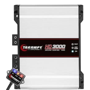 Módulo Amplificador Digital Taramps Hd 3000 1 Ohm - 3000w RmsCom o Módulo Amplificador Digital Taramps Hd 3000, você encontra a solução que procura. São Módulos Amplificadores alta definição com 1 canal e 3000W RMS de potência.Os Módulos Amplificadores Taramps auxiliam quem procura uma solução para um som com altíssimo rendimento, compacto, com funcionalidades simples e que prezam a originalidade no som de seu automóvel.A linha de Amplificadores Taramps também auxilia quem procura suprir as necessidades de um trio elétrico automotivo, Em sua linha podemos encontrar amplificadores Ideais para quem busca alimentar seus falantes, drivers e super tweeters de alta potência.Além de proporcionar um alto desempenho, alta potencia e um grande grau de qualidade, o Amplificador Digital Taramps Hd 3000 1 Canal 1x3000W RMS 1 Ohm proporciona segurança para seus equipamentos.Especificações Técnicas:• Modelo: 1 Ohm• Número de Canais: 01• Potência Máxima @ 13,8VDC - 1 OHM: 3575W RMS• Potência Máxima @ 13,8VDC - 2 OHMS: 2355W RMS• Potência Máxima @ 13,8VDC - 4 OHMS: 1365W RMS• Potência Máxima @ 12,6VDC - 1 OHM: 3000W RMS• Potência Máxima @ 12,6VDC - 2 OHMS: 2025W RMS• Potência Máxima @ 12,6VDC - 4 OHMS: 1140W RMS• Sensibilidade de Entrada: 230mV• Relação Sinal/Ruído: ?89dB• Resposta de Frequência: -3dB @ 10Hz a 20KHz• Crossover High Pass (HPF): 10Hz a 80Hz (-12dB/8 ?) Variável• Crossover Low Pass (LPF): 80Hz a Full (-12dB/8 ?) Variável• Impedância de Entrada: 18K OHMS• Sistema de Proteção: Curto na Saída / Tensão Baixa, Tensão Alta e Proteção Térmica• Tensão de Alimentação Mínima: 9 VDC• Tensão de Alimentação Máxima: 16 VDC• Consumo em Repouso @ 12,60 VDC: 1,7A• Consumo Maximo Musical @ 12,6 VDC: 143,5A• Consumo Maximo Senoidal @ 12,6 VDC: 287A"• Smart Cooler (acionado por temperatura ou áudio, com 2 velocidades)• ON: LED Azul• CLIP: LED Amarelo• OVER: LED Vermelho• Dimensões (LxAxP): 229 x 65 x 186mm• Peso: 2,0KgConteúdo da Embalagem:• 1 Amplificador HD 3000 1 Ohm Taramps• Manual• Monitor de LED